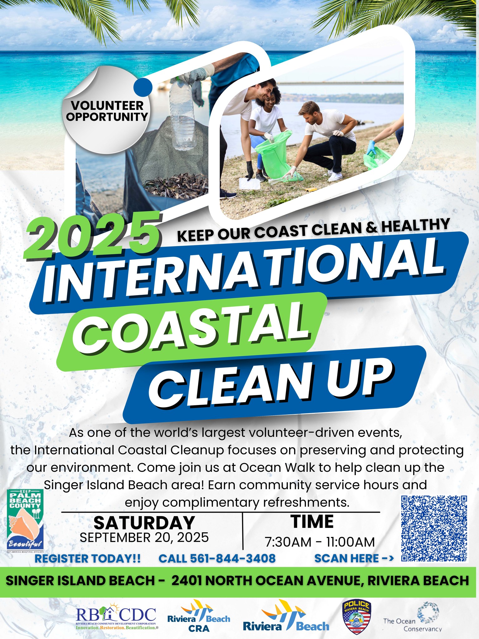Join us for the 2025 International Coastal Clean Up by calling 561-844-3408 to register.